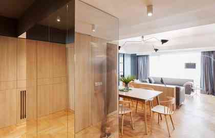 一般居室空间都不希望有黒房间(没有光线的房间)的出现,即使走道也希望有光线。选用玻璃砖,既有区隔作用,又可把光引领入内,且有良好的隔音效果。玻璃砖可应用于外墙或室内间隔,提供良好的采光效果,并有延续空间的感觉。不论是单块镶嵌使用,还是整片墙面使用,皆可有画龙点睛之效。